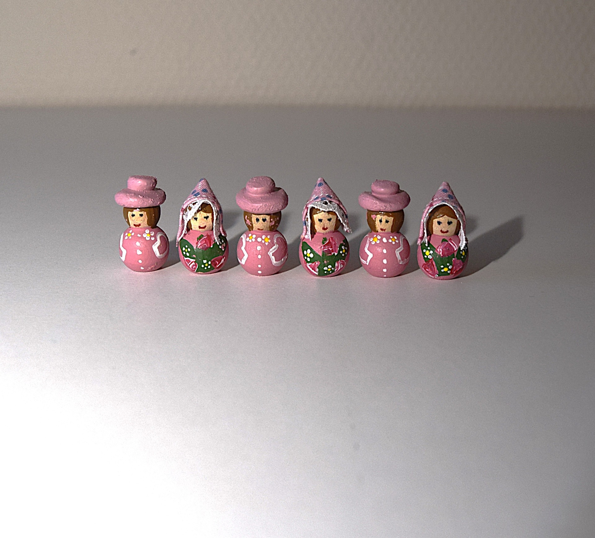 Familj bestående av 3 damer och 3 herrar. Svarvade i björkträ. Finns bara en uppsättning.